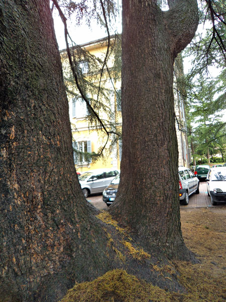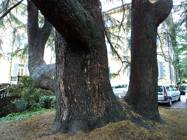 | Altezza: m. 34,5 Diametro chioma: m. 23 Circ. tronco: cm. 565 e 255 Diametro tronco: (a 1.3 m.) cm. 180 e 81,2 Pluricormico: si, 2 tronchi |